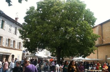 While I was driving with my sister through the Alpes Maritimes (South-East of France, north from Cannes) on Sunday 8th of May, we arrived in a small village called Saint Cézaire sur Siagne. As we were strolling in the streets, sounds of music and voices attracted us to the main square around an old lime tree. People were chatting, clothes, shoes, books, plants etc were all displayed on the ground and children had their faces painted. Is it the village ...